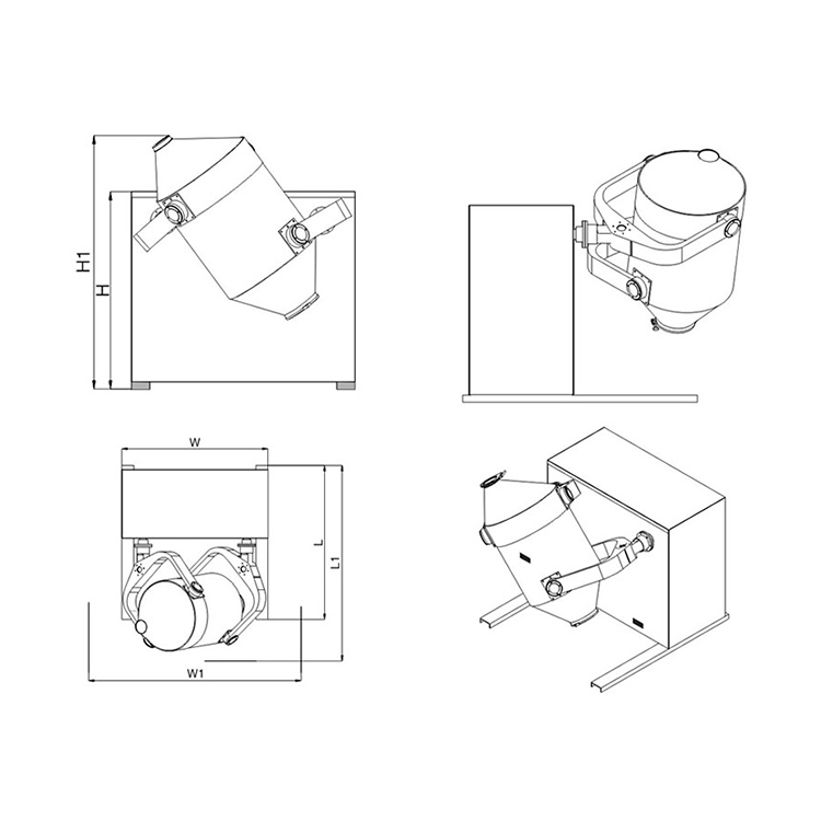 三維混合機混合的程度分為理想混合、隨機混合和完全不相混三種狀態。各種物料在混合機械中的混合程度,取決于待混物料的比例、物理狀態和特性,以及所用混合機械的類型和混合操作持續的時間等因素。